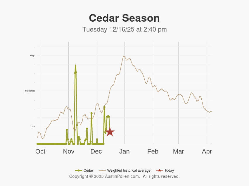 Cedar Season Tuesday 12/16/25 at 2:40 pm |