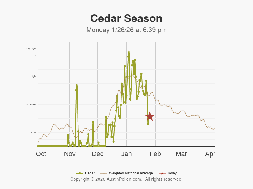 Cedar Season Monday 1/26/26 at 6:39 pm |