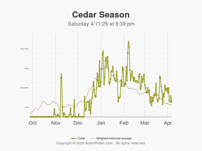 Cedar Season Saturday 4/11/26 at 8:39 pm |