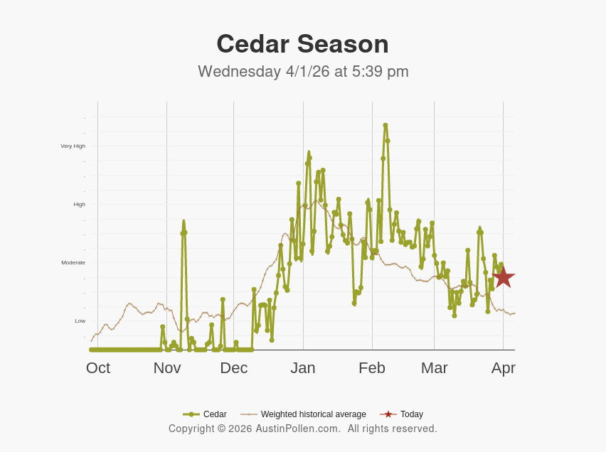 Cedar Season Wednesday 4/1/26 at 4:39 pm |