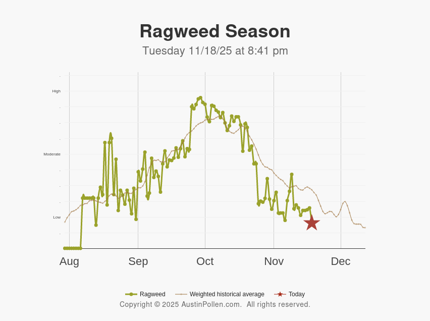 Ragweed Season Tuesday 11/18/25 at 8:41 pm |