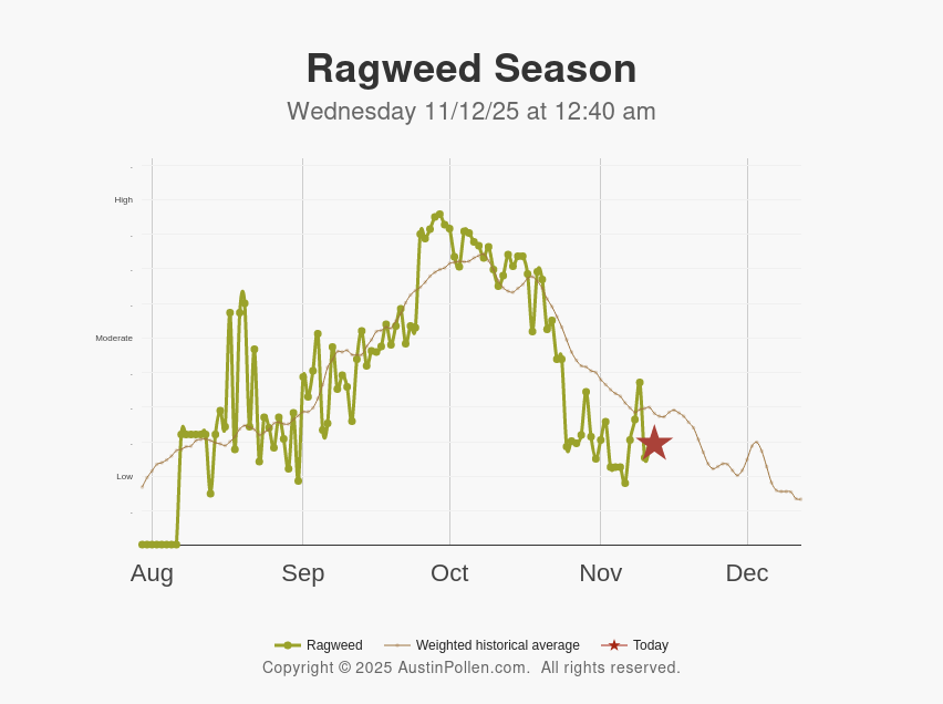 Ragweed Season Tuesday 11/11/25 at 8:40 pm |